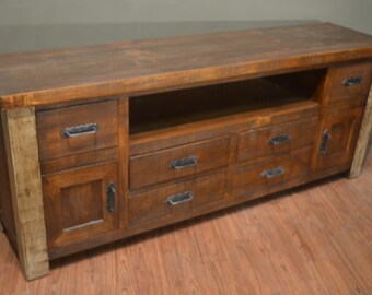 rustic solid reclaimed wood tv stand media